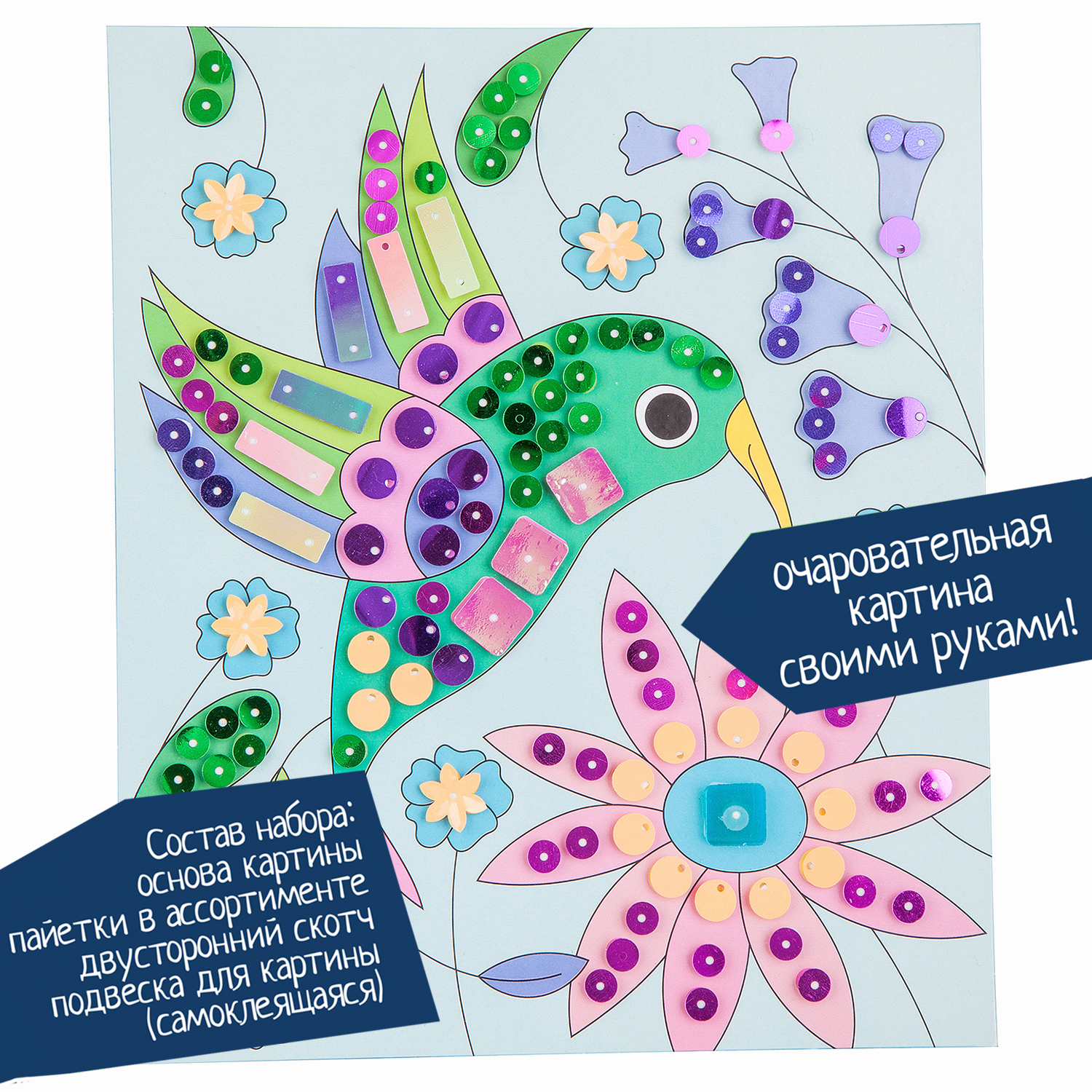 Набор для творчества «Аппликация пайетками. Колибри»