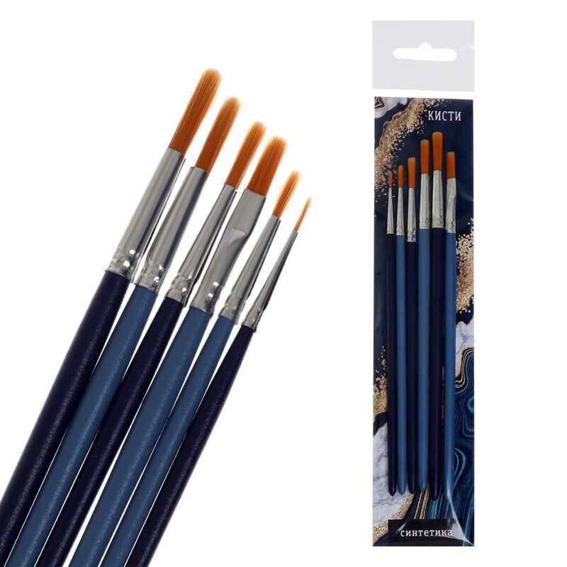 - Набор кистей Синтетика 5 штук Calligrata №6 (круглые №: 1, 2, 5; плоские №: 5, 8), интенсивный цвет ручки
