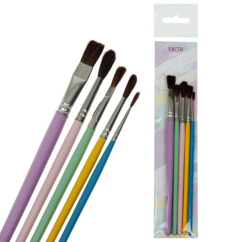 Набор кистей Пони 5 штук Calligrata №8, круглые №: 1, 2, 3, 4, 5. Размер кистей соответствует российскому размеру.