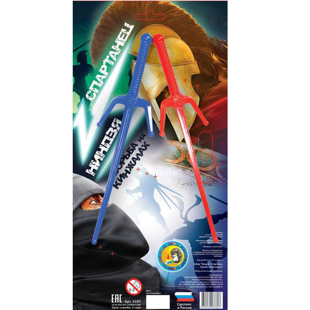 В огромном ассортименте игрушек и игровых наборов российской компании «Строим вместе счастливое детство» (СВСД) каждый родитель сможет подобрать для своего ребёнка именно ту игрушку, которая придётся ему по душе. Набор оружия «Ниндзя – Спартанец. Борьба на кинжалах» входит в серию игрушечного оружия компании СВСД. Предназначен набор для мальчиков от трёх лет и старше (3+).