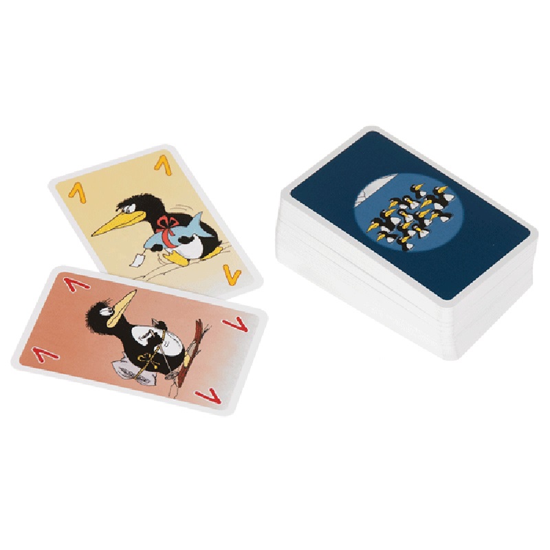 В состав игры входит: карты льдин (18 шт); карты пингвинов (72 шт); цветная инструкция с подробным описание. Упакован комплект в яркую подарочную коробочку из картона. Вес игры 180 грамм.