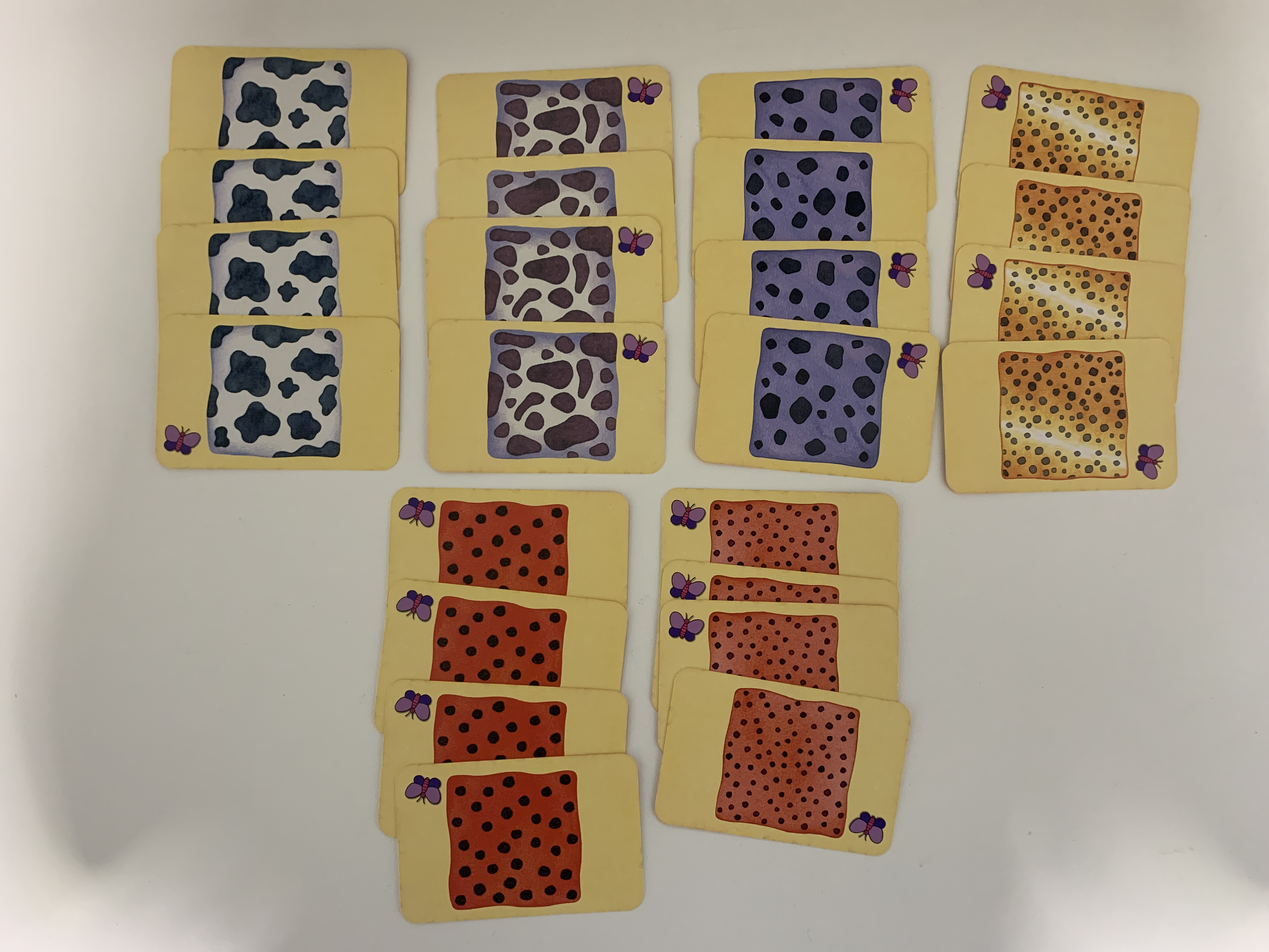 Казалось бы, что тут сложного?! Но на самом деле, очень легко спутать узор божьей коровки и леопарда, мыши и коровы. Если участник игры ошибся, ему придётся сбросить карточку узора и карточку животного. А это значит, что у него на руках стало на одно животное меньше. В случае, если нет подходящего животного ни у одного из соперников (такое возможно, если все участники уже потеряли это животное в ходе игры), тогда карточка узора сбрасывается и на стол выкладывается новая. Игра завершается, когда заканчивается стопка карточек узоров. Игроки переходят к подсчёту количества своих карт узоров. Тот, у кого окажется их больше, одерживает победу. Если у нескольких игроков одинаково максимальное количество карточек узоров, значит, они делят победу между собой. Редко, но возможна победная ничья – если у всех участников игры окажется одинаковое количество карточек узоров.