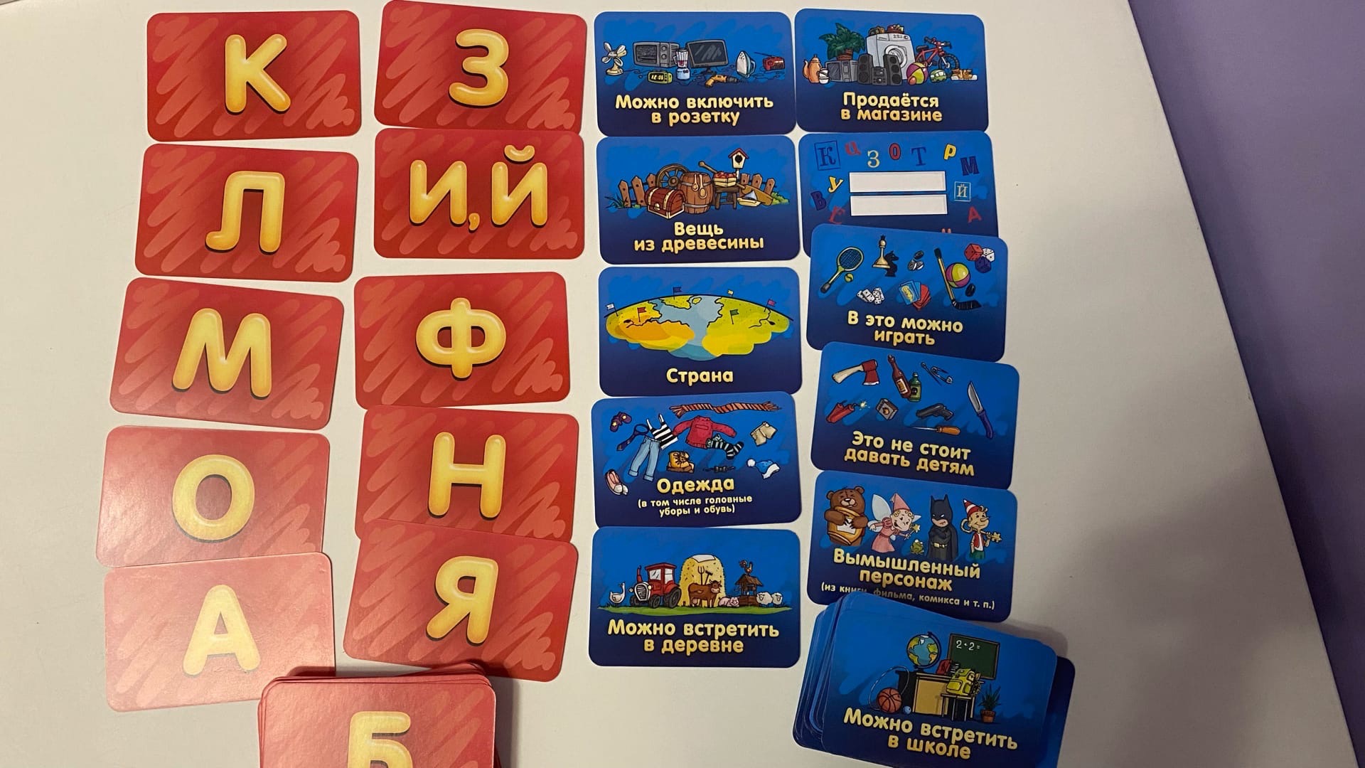 Это несколько иное представление известной хитовой игры «Соображарий», здесь необходимо подбирать слова, соответствующие красочным иллюстрациям на карточках с заданиями. Например: Кто из игроков первым назовёт животное на «М»? Или одежду на букву «И»? Или может нечто квадратное на букву «Р»? А может быть даже кто-то готов назвать четыре предмета, которые начинаются на букву «Н» и не тонущие в воде. Сначала детям может понадобиться помощь взрослого, потом они могут состязаться самостоятельно.
