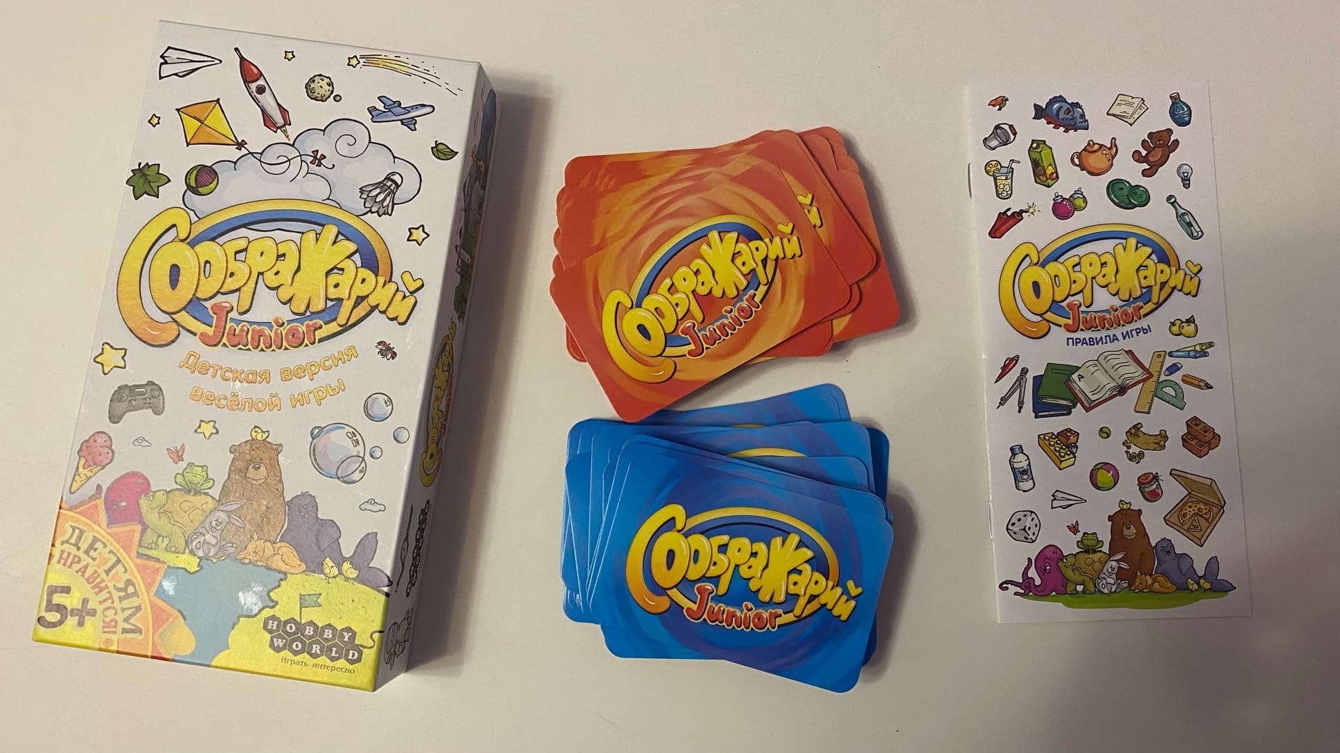Настольная игра «Соображарий Junior» представляет собой развлечение, которое адаптировано под самых юных и любознательных участников от пяти лет и старше. Она придётся по вкусу всем игрокам без исключения с того самого момента, как они сыграют первую партию в состязании на находчивость, быстроту реакции, разнообразие словарного запаса и развитие речи. В комплект входит: карточки с буквами (52 шт.), карточки с заданиями (60 шт.) и правила игры. Упакованы все элементы игры в картонную коробку, где её удобно хранить в последующем.