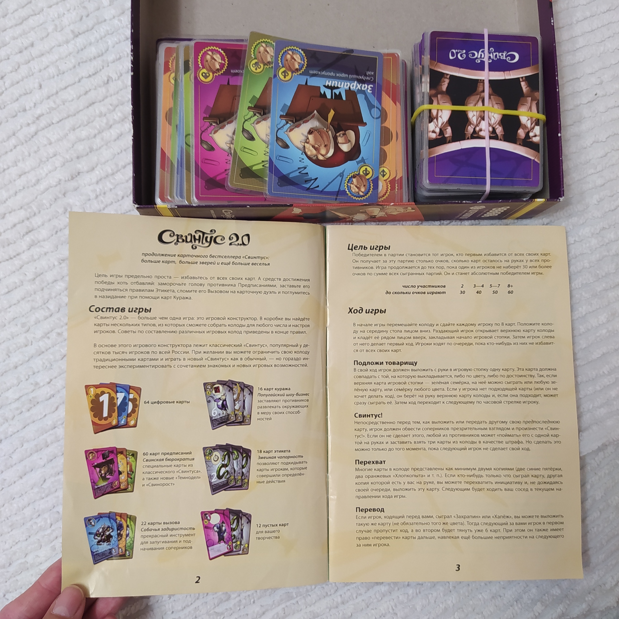 «Свинтус 2.0» от компании Hobby World (Мир Хобби) – предельно новая, расширенная, сногсшибательная версия популярной карточной игры. В ней 176 карт – на 64 больше, чем раньше! – в которых спрятались не только свинки, но и змеи, собаки, даже попугаи. Новые правила прописаны, но у вас есть все шансы придумать получше. Для этого в комплекте собрано несколько пустых карт.