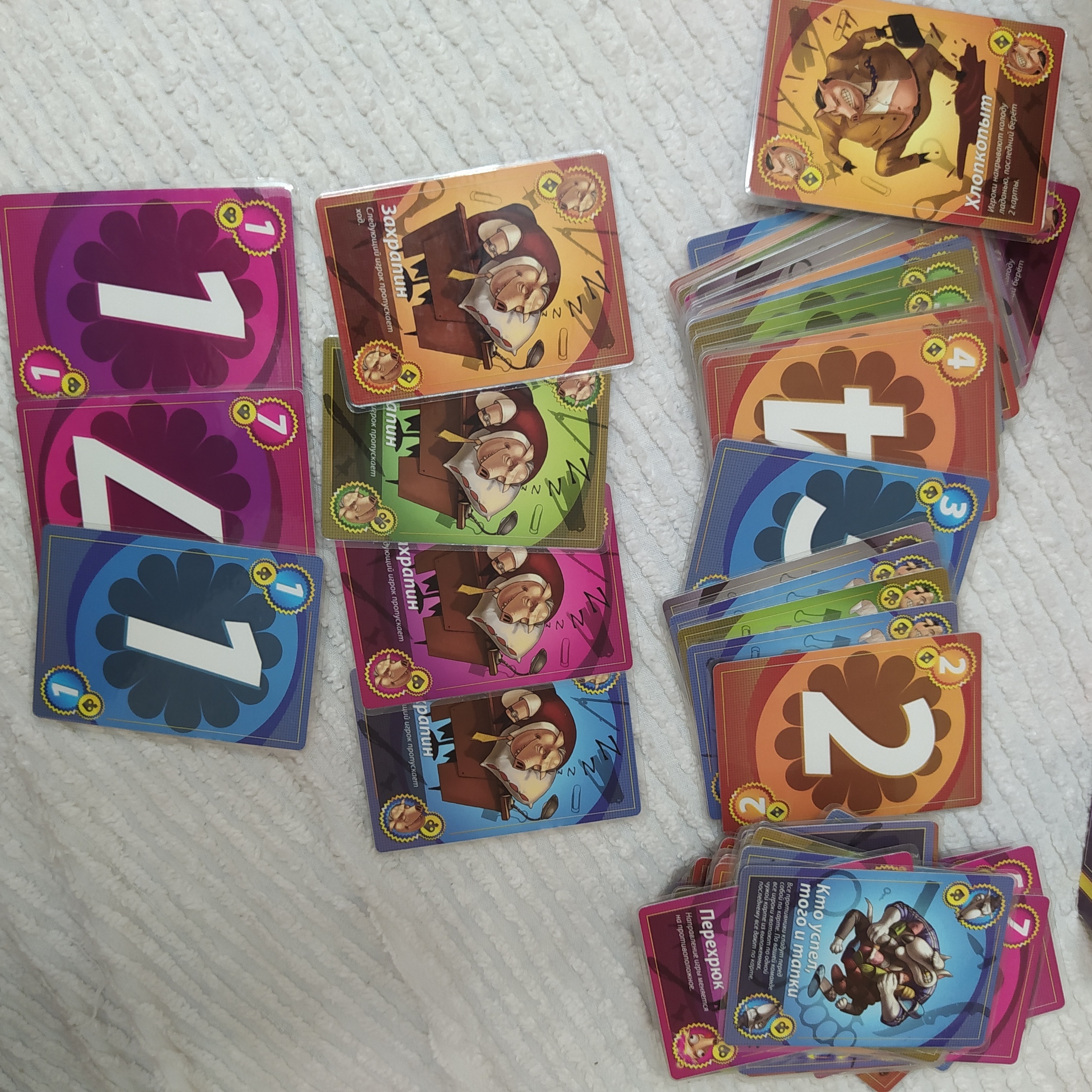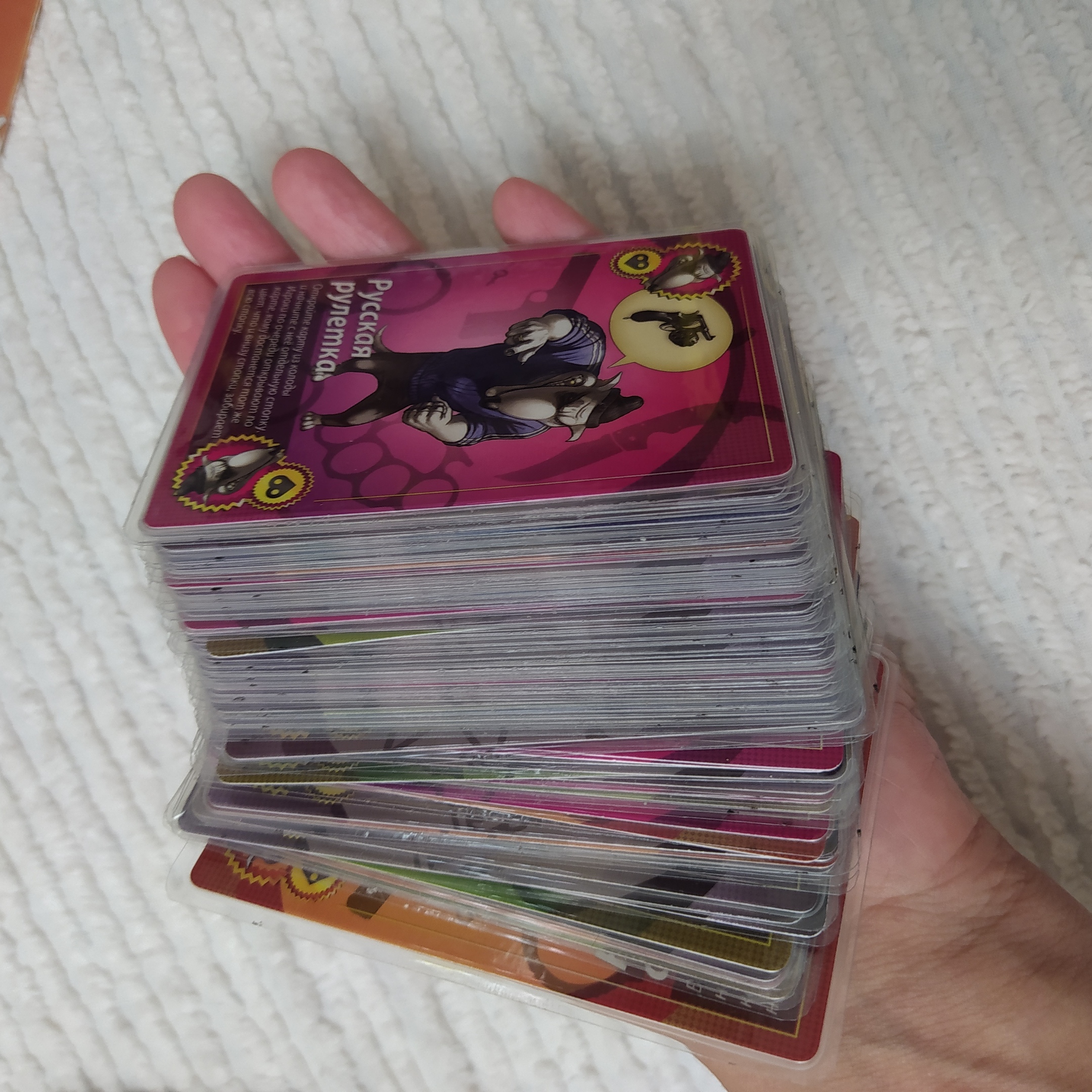 И чтобы не смешивать карты, я часть закрепила на резинку. Это те карты, которые мы еще ни разу не вводили в игру и еще с ними не знакомы. Если бы играли чаще, то их бы изучили.