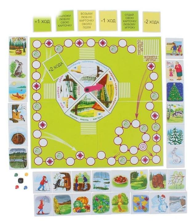 Занимаясь, дети выучат названия месяцев года, научатся классифицировать их на летние, зимние, осенние и весенние, а также смогут познакомиться с природными сезонными изменениями и осознать характерные их закономерности. Настольная игра «Целый год» развивает логику, внимание, память, пополняет словарный запас и расширяет кругозор.