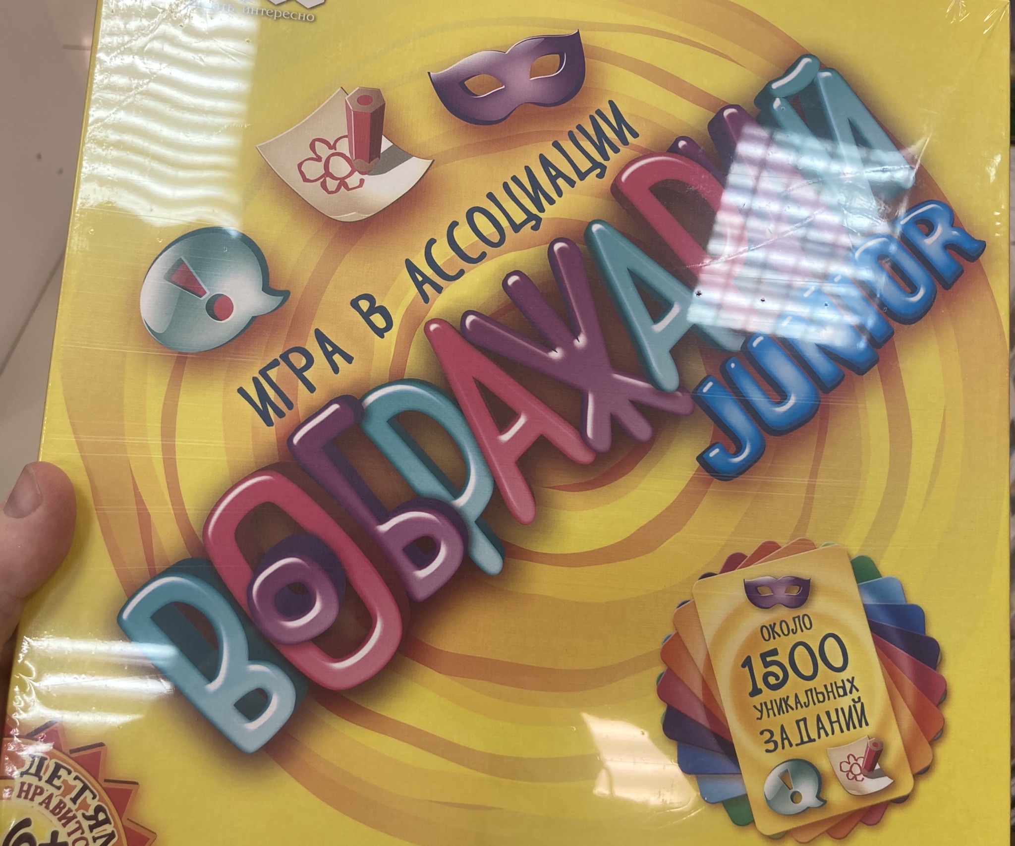 Добрый день! 7 марта, второй выходной день, нас пригласили в гости, там будут дети. Решили купить что-то с собой для развлечения. Выбирали вместе с дочками десяти и двенадцати лет. Остановились на игре "Воображарий Junior", классическая версия этой игры у нас уже есть в копилке настолок дома. Привлекло нас то, что здесь более одной тысячи пятисот заданий, их хватит надолго.