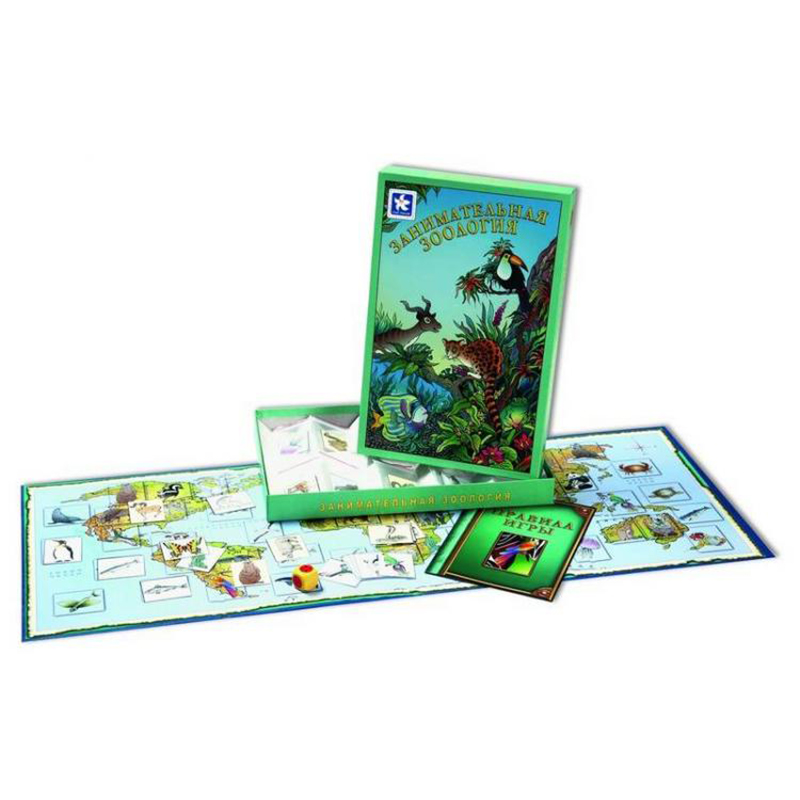 Настольная игра "Занимательная зоология" познакомит детей с основными животными, населяющими нашу планету. Ребята получат первоначальные знания в области географии, узнают, сколько материков у Земли, как они называются и выглядят, какие океаны их омывают. Игра развивает память, внимательность, расширяет кругозор. В неё можно играть даже в одиночку – просто кидая кубик, вытаскивая нужное количество карточек и раскладывая их по местам.