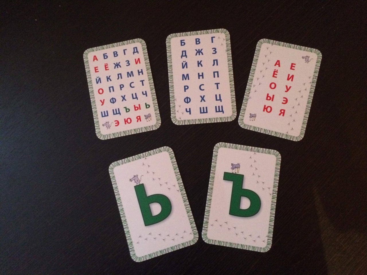 трех, на которых напечатаны вся азбука по порядку, гласные и согласные буквы.