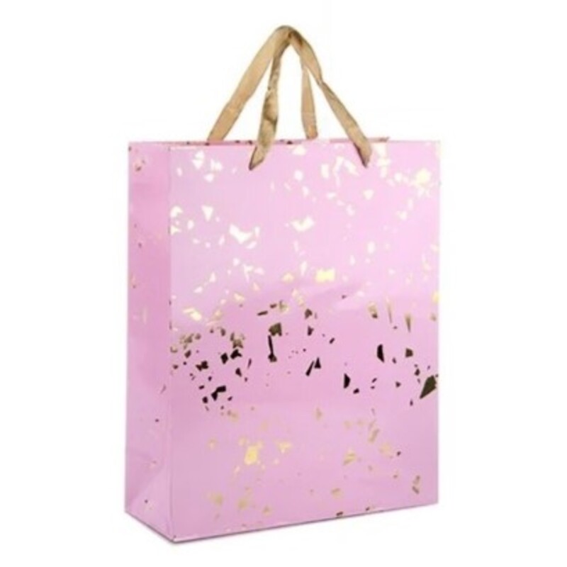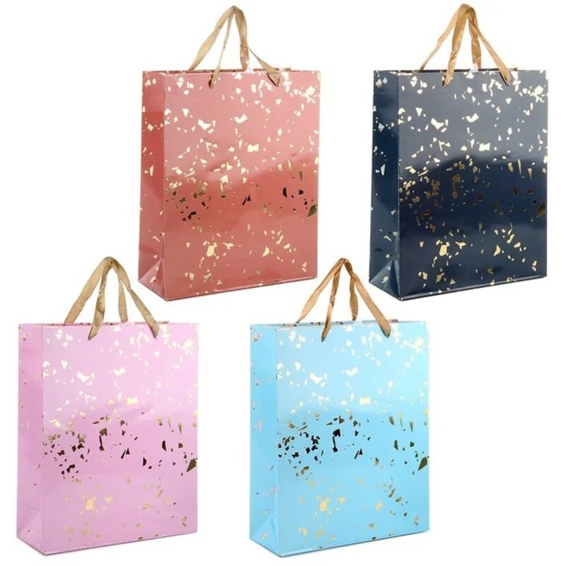 Стильный дизайн, удобные ручки - такой пакет идеально подойдет для подарка, который станет выглядеть в нем празднично и роскошно! Пакет изготовлен из ламинированной плотной бумаги. Ручки - тесьма. Декор - фольга.