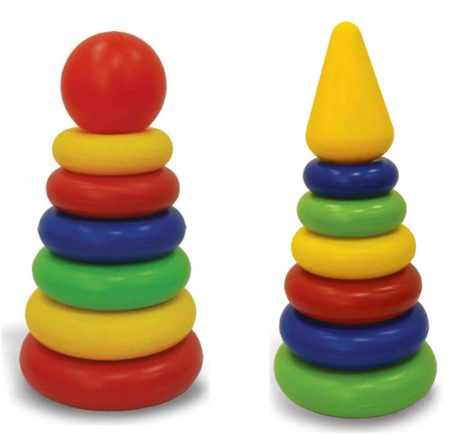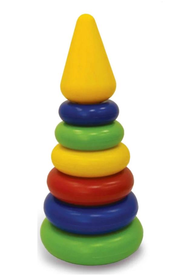 Пирамидки на 6 колец. Цель игры: научить ребенка сравнивать предметы по форме, цвету и размеру. На стержень поочередно надеваются кольца - от большого до маленького. Замыкает пирамидку маленький шарик. Игра развивает мелкую моторику, координацию движений и глазомер