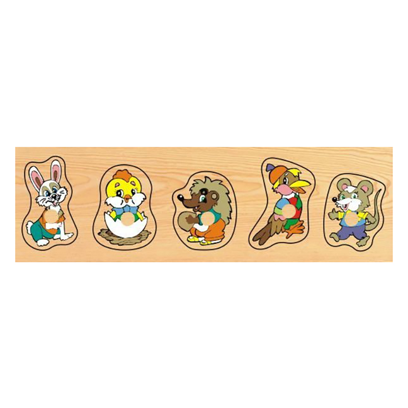 Рамка "Зверята 2" продолжает коллекцию таких изделий. Она представляет собой основу из фанеры и пять вкладышей с изображением детёнышей животных: зайчик, цыплёнок, ежонок, птенец и мышонок.