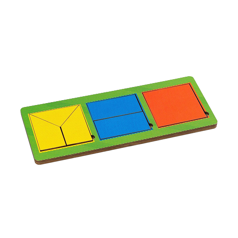 2. Развивается мелкая моторика. Вставляя определенным образом части квадрата, ребенок прекрасно тренирует пальчики.