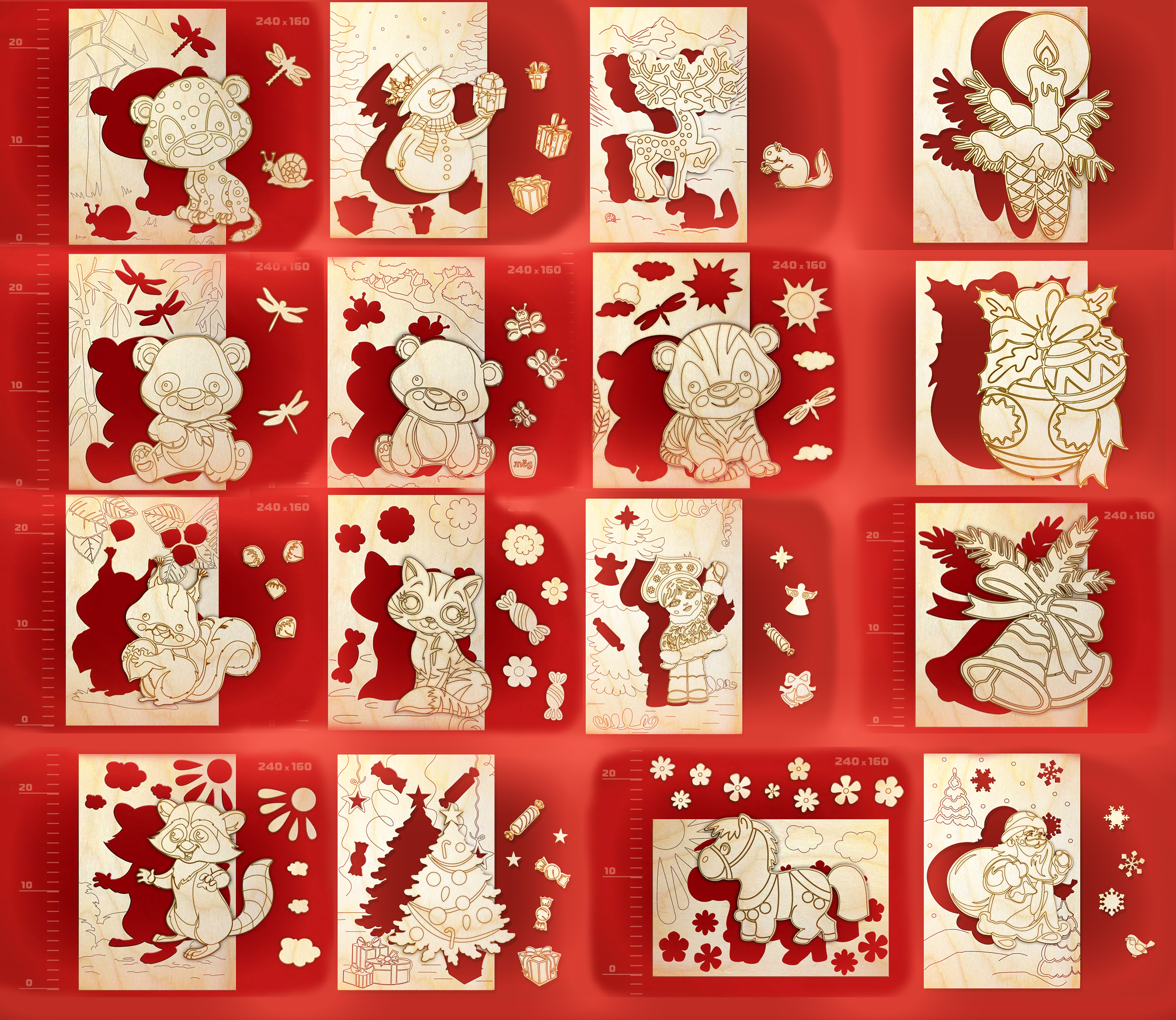 Раскраски-трафареты – это игрушки на новогоднюю тематику, предназначенные для детского творчества. Подобные комплекты ориентированы на детей от трёх лет и старше. В набор входит лист фанеры с заранее вырубленными деталями, а также небольшая красочная инструкция. Раскраски представлены в ассортименте. Можно выбрать для себя именно ту аппликацию, которая больше всего придётся по душе. Элементы полностью выполнены из натуральных экологически чистых материалов – берёзовой фанеры.