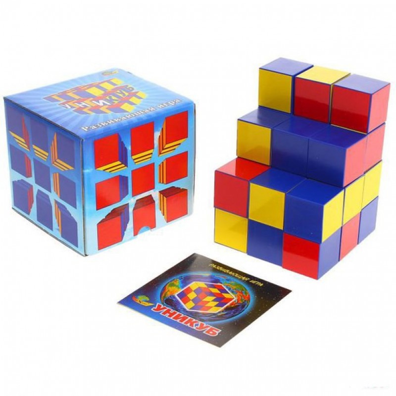 Кубики УНИКУБ от российской компании-производителя ООО «Корвет» – Это универсальные кубики, с помощью которых дети попадают в мир трёхмерного пространства. Развивающая игра рекомендована для ребят от двух до двенадцати лет (2+). Она будет одинаково интересна как мальчикам, так и девочкам. Придумал эти уникальные кубики Б.Никитин.
