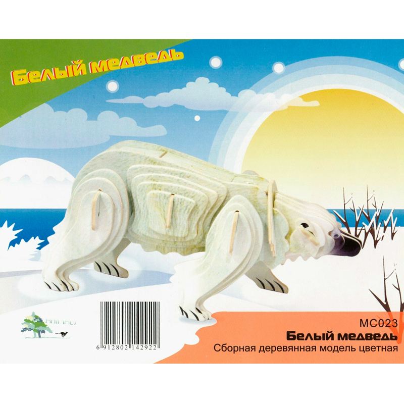 Сборная деревянная модель «Белый медведь» МС023 цветной, Чудо-дерево