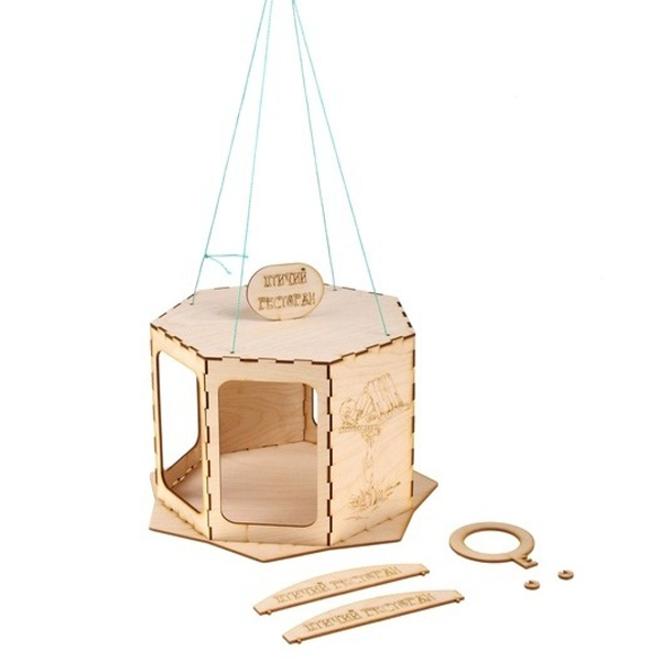 Детали выполнены из натурального экологически чистог.о материала – 100% древесины, имеют насыщенный запах свежего дерева, не содержит формальдегид и иные вредные вещества. Игрушка полностью безопасна и ориентирована на детей от пяти лет и старше (5+), из-за наличия мелких деталей не рекомендуется использовать детям младше трёх лет. Для защиты от влаги готовое строение необходимо покрыть лаком, до этого можно проявить все свои творческие способности и раскрасить кормушку любыми красками. Для работы подойдут любые: акриловые, гуашь, темперные краски (в комплект не входят). Можно нанести узор с помощью выжигательного аппарата. Необходимо заранее продумать общий дизайн модели и окраску каждой детали. Даже без украшения у вас получится оригинальная и красивая игрушка.
