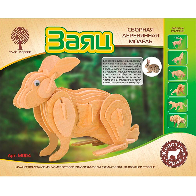 Сборная деревянная модель «Кролик» M004, Чудо-дерево