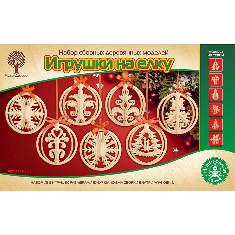 Сборные деревянные модели «Елочные игрушки» Чудо-дерево, в ассортименте