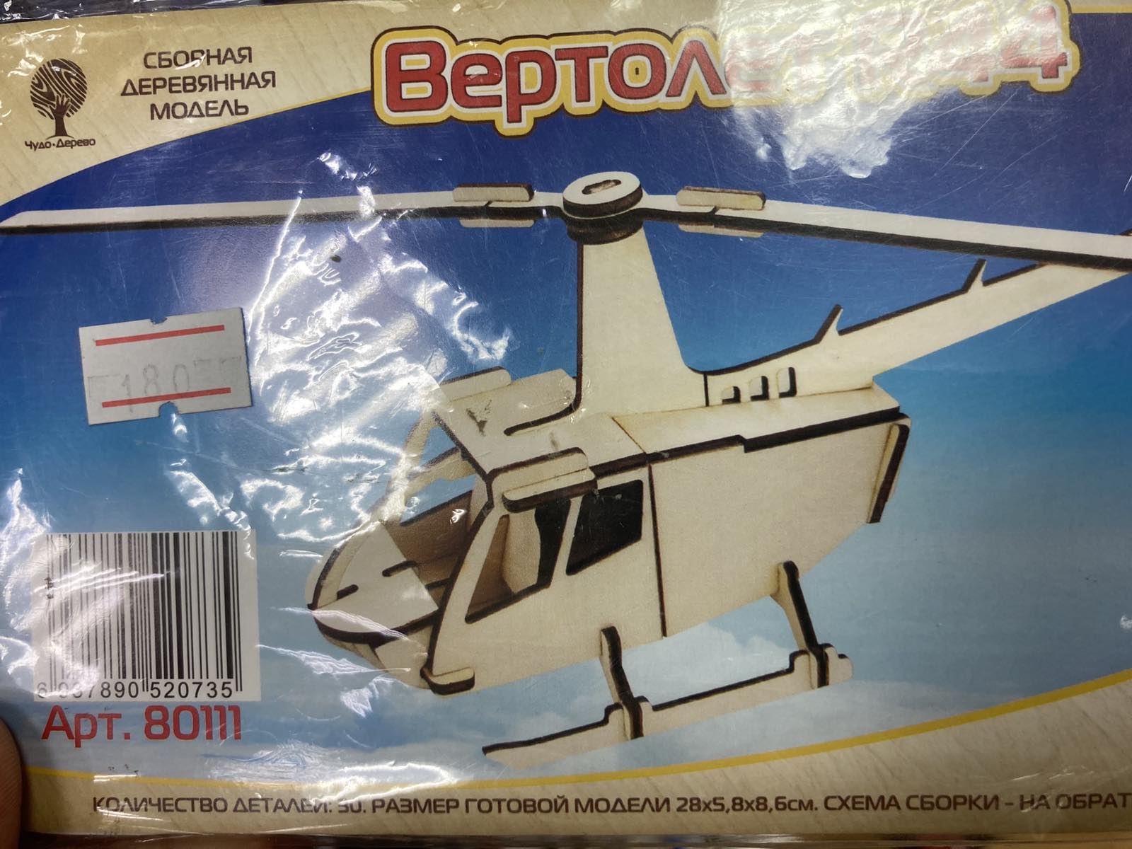 Сборная деревянная модель «Вертолет» Чудо-дерево, в ассортименте