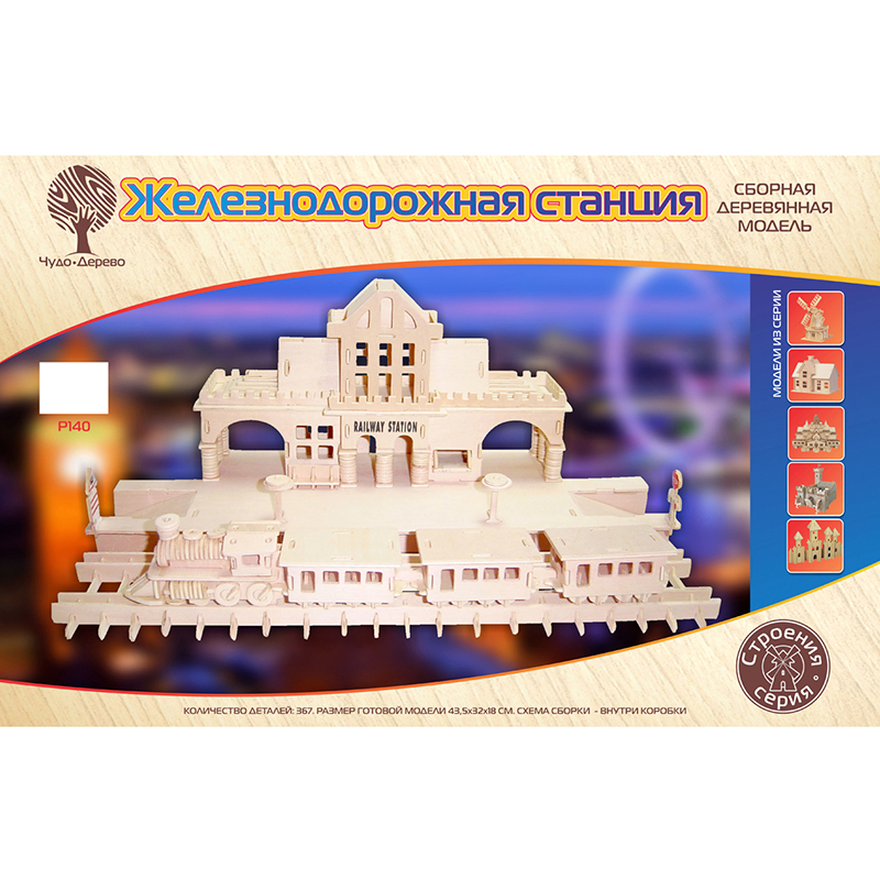 Сборная деревянная модель серии «Железная дорога» представлена в ассортименте: