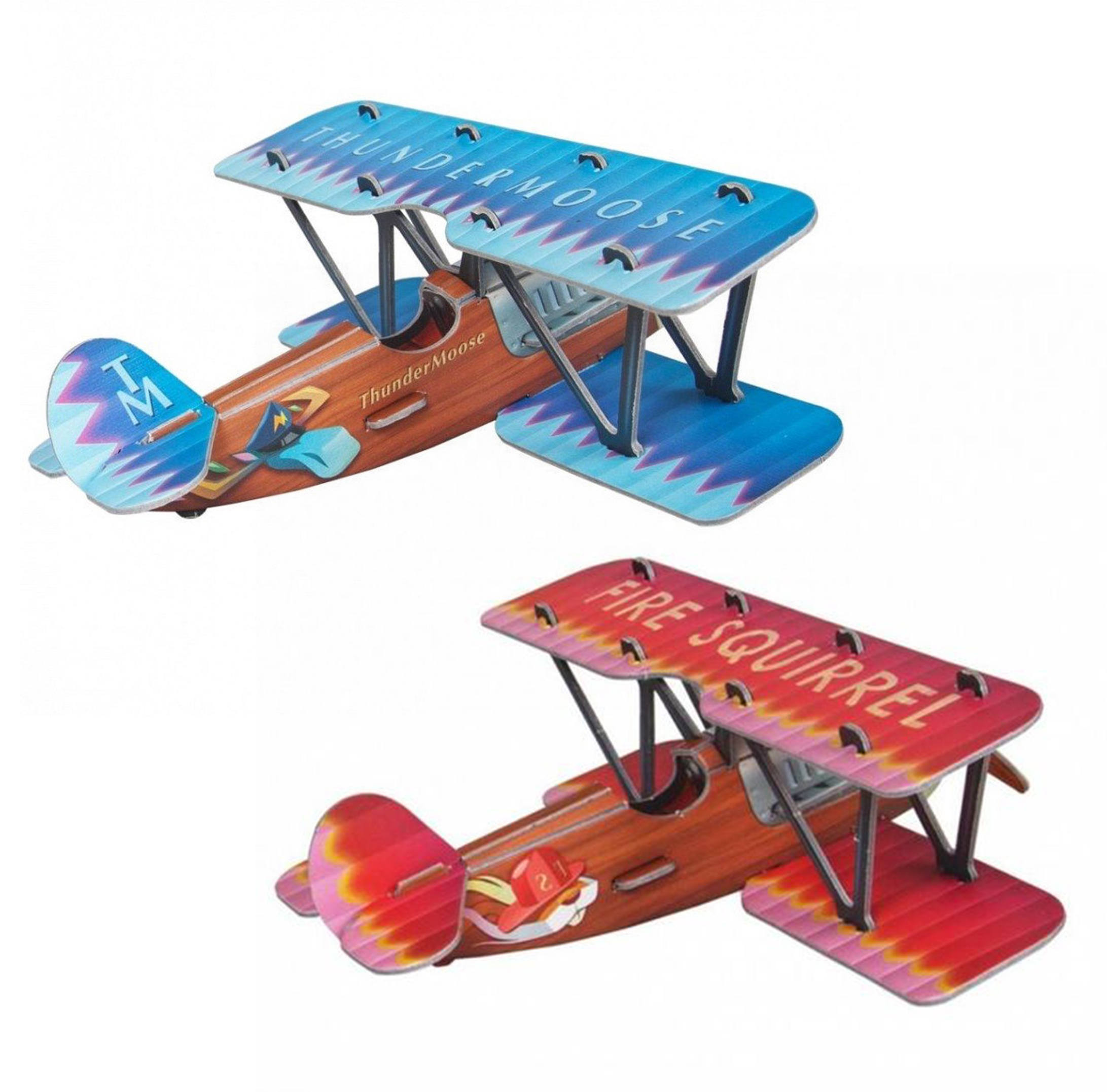 Пропеллер вращается, даже есть возможность посадить кого-то в тесную пилотскую кабину. Конструкция старинного самолетика относится к тому времени, когда самолеты еще строили из древесины, а для запуска двигателя механик раскручивал пропеллер руками, а потом отбегал в сторону. Самолетик раскрашен в спортивном стиле того времени, когда при изготовлении самолетов основные детали корпуса и крыльев делались из древесины. В то время первые авиаторы устраивали настоящие гонки, соревнуясь на дальность перелета, высоту подъема над землей и скорость полета. Сегодня обладатель двух наших самолетиков разного цвета может даже устроить настоящие воздушные соревнования! В конструкции самолетика все детали выполнены из одинакового материала. Это картон толщиной 1,5 мм.