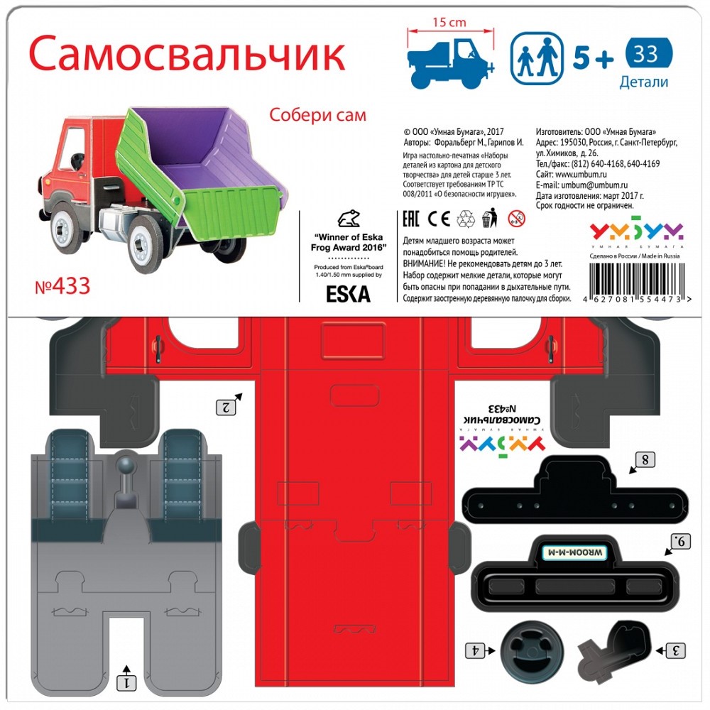 Сборная игрушка из картона «Самосвальчик», УмБум