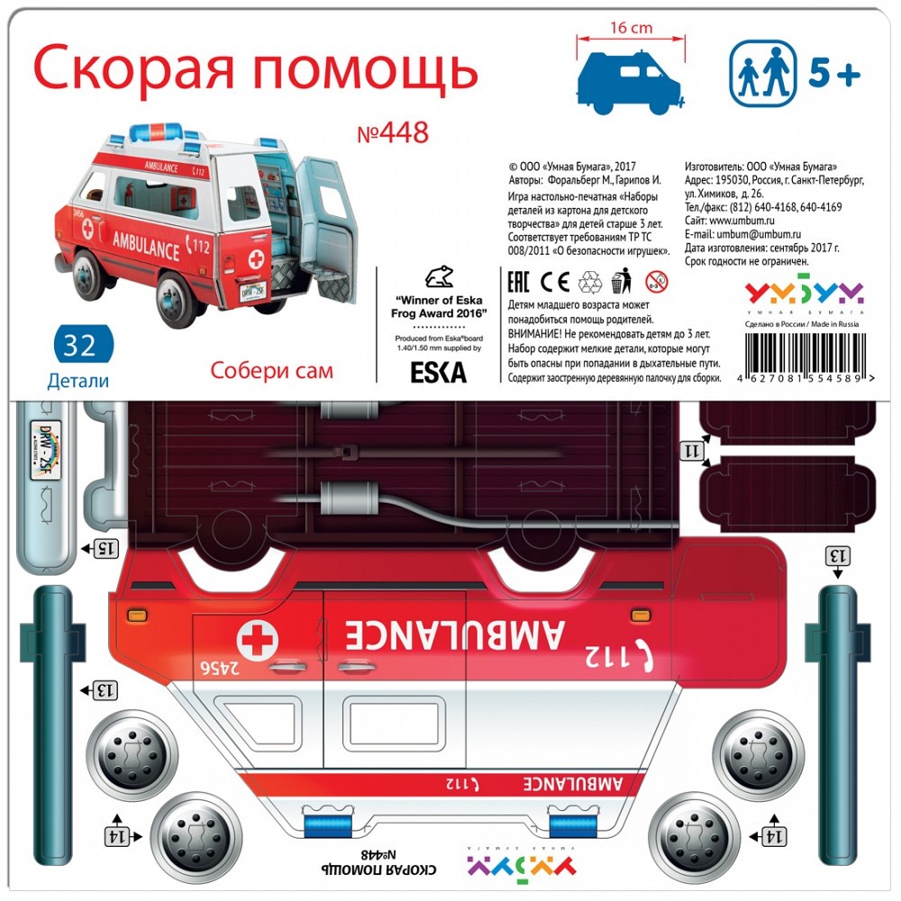 Сборная игрушка из картона «Скорая помощь», УмБум