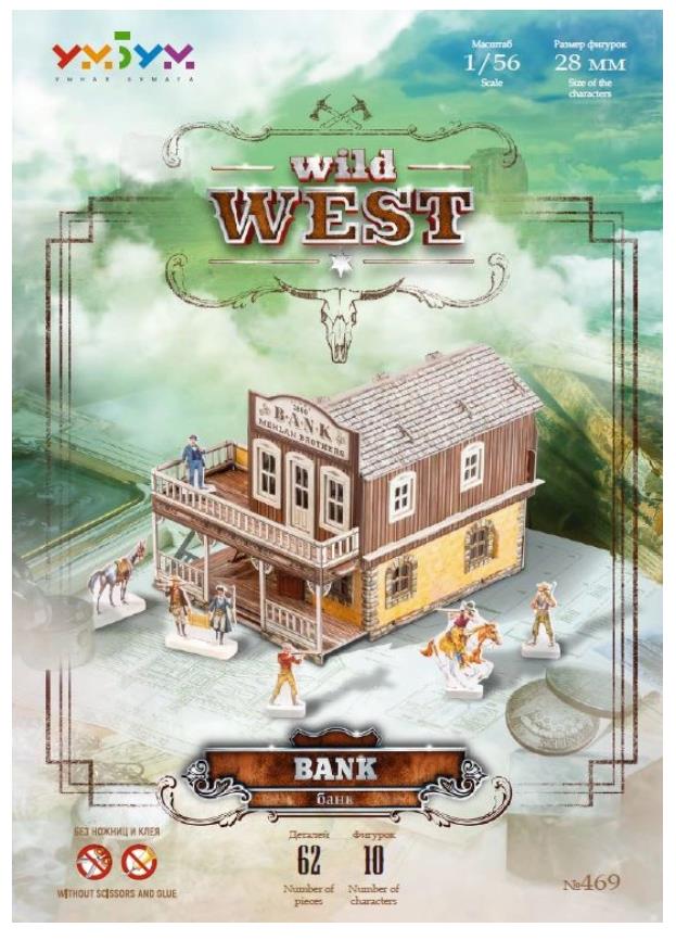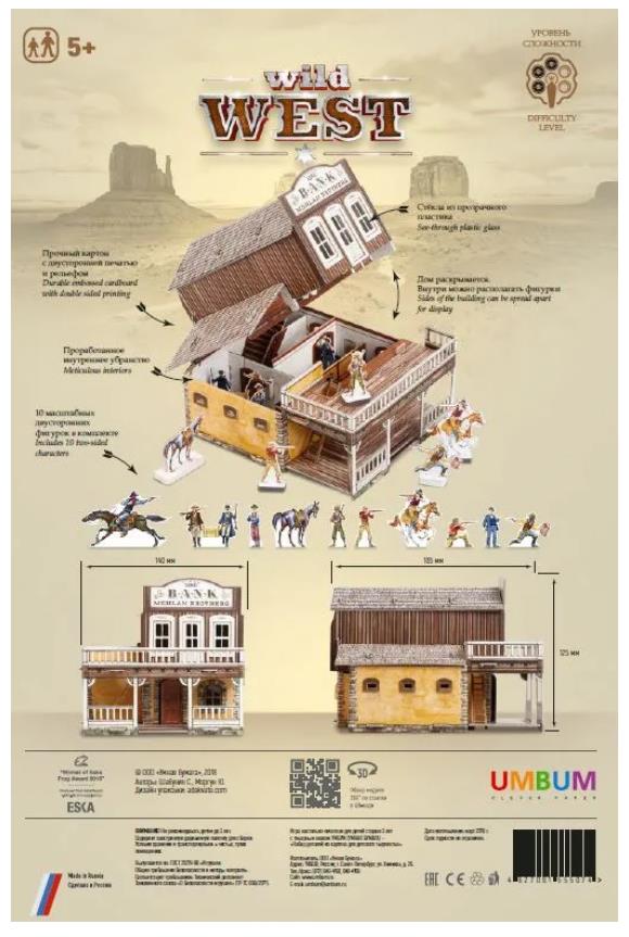 Создай свой собственный неповторимый мир Дикого запада! Для сборки модели не понадобятся режущие инструменты или клей. Детали уже вырезаны и нужно просто вынуть их из листа картона и соединить между собой.
