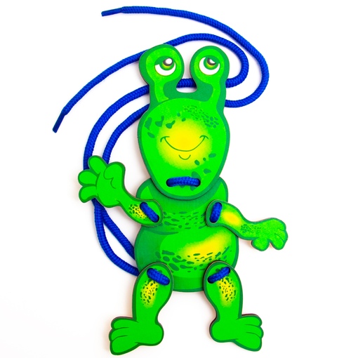 2. Предложите ребенку расположить детали (части игрушки) на ровной поверхности (стол, диван, ковер, пол). Затем попросите сложить в нужном порядке так, чтобы получился герой - «Семен Зеленыч». Далее, после того как ребенок составил верно все тело, попросите соединить детали шнурком, могут быть разные вариации. Если ребенку сложно это сделать самостоятельно, помогайте и демонстрируйте, как это должно быть.