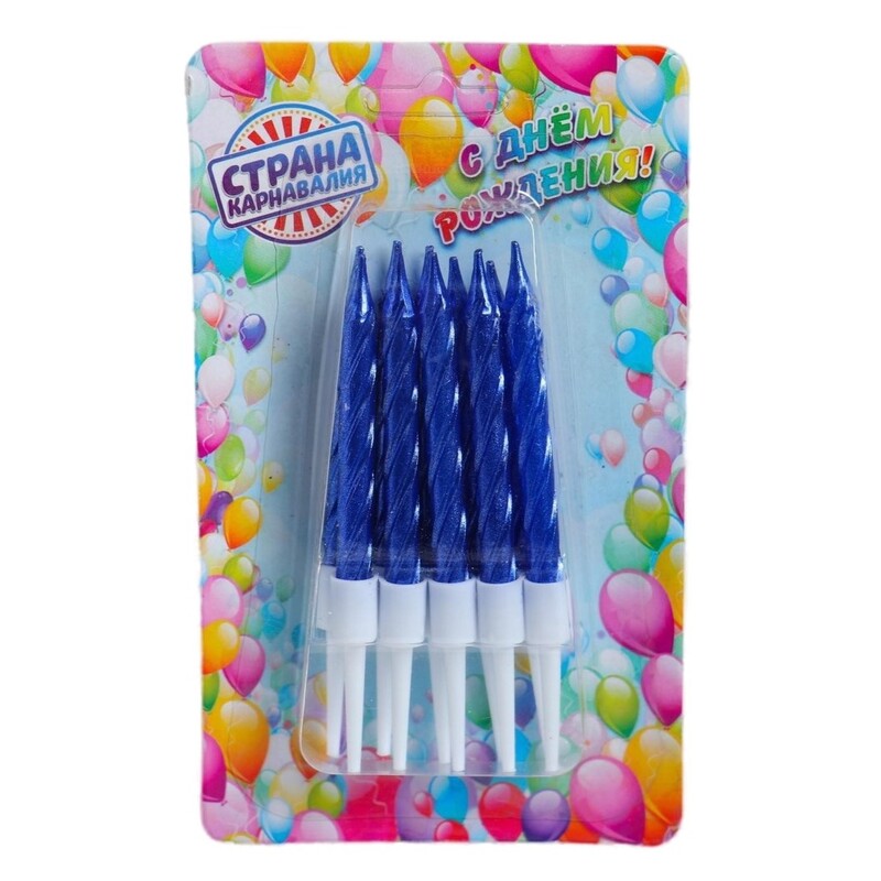 Свечи для торта «Спираль» 7 см, цвет - синий металлик, количество в наборе - 10 шт. Свечи упакованы в блистер.