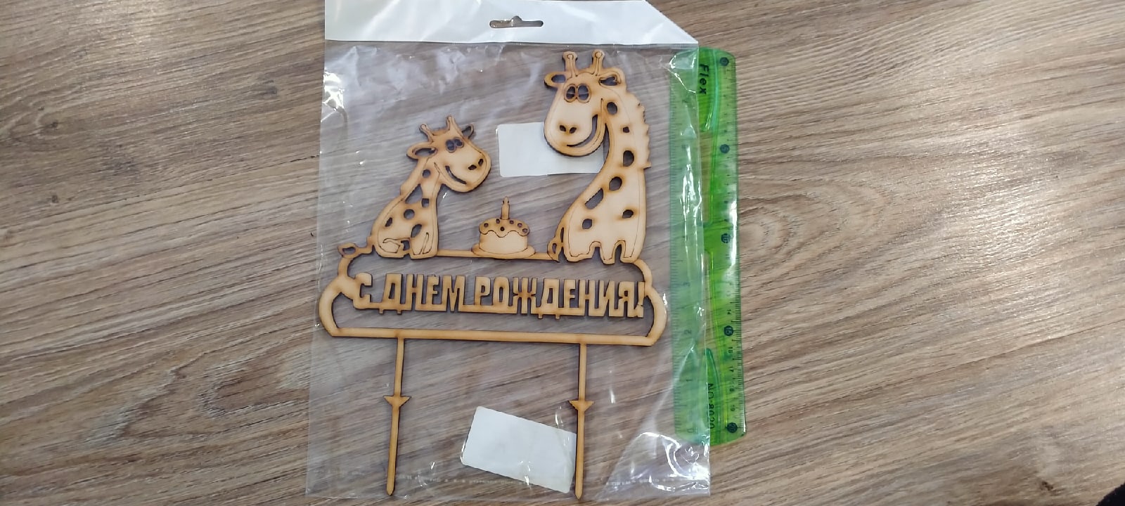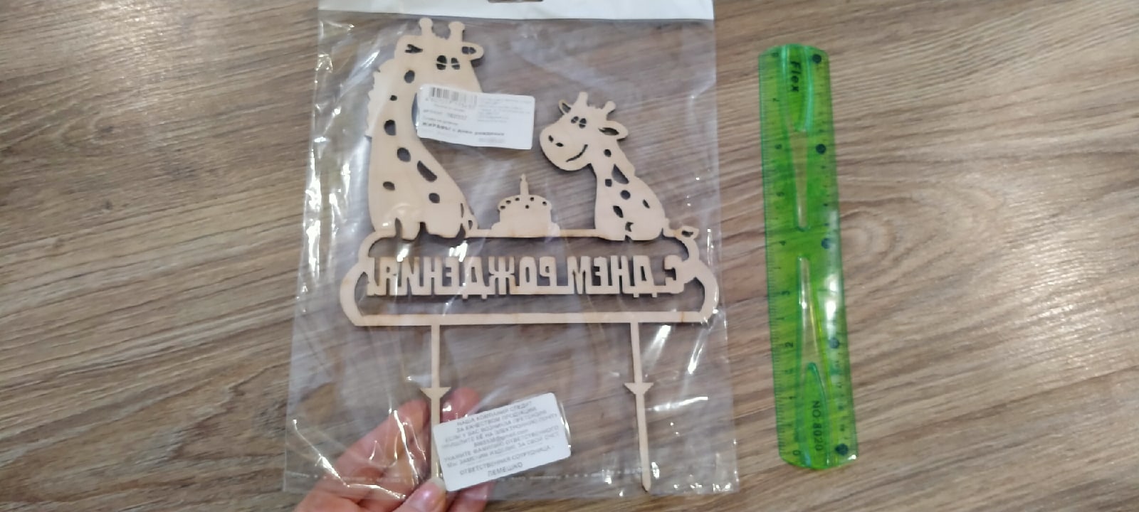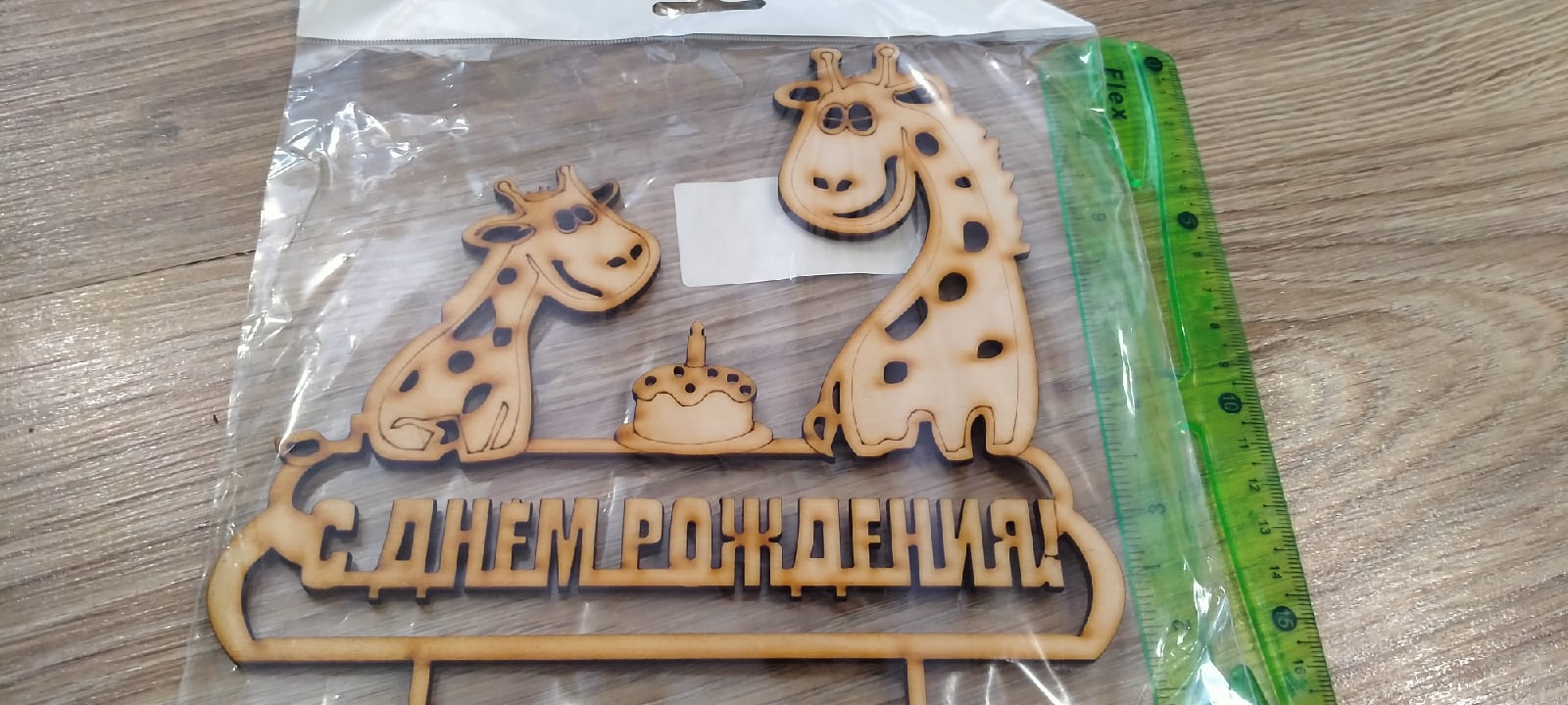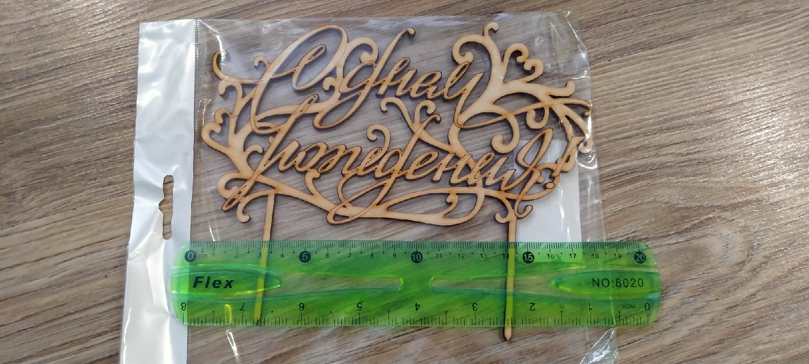 Размер топпер 18,5х14,5 см (из них 5 см это палочки, которые втыкаются в тортик). Толщина топпера 3 мм.