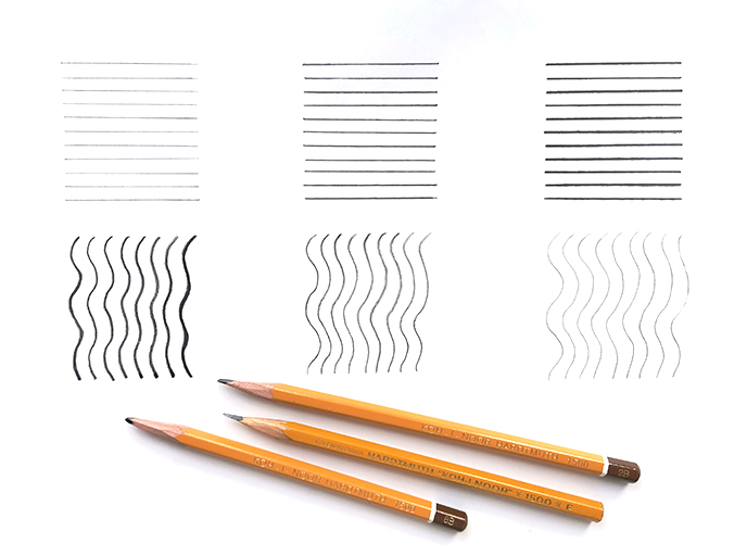 Линии могут быть светлыми и темными. Твердый карандаш оставляет светлую серую линию, а мягкий темную, почти черную.
