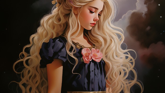 Заслышав голос волшебницы, она распускала свои косы, обвивала их вверху около оконного затвора, и тогда ее волосы золотистой волной упадали на двадцать локтей ниже окна, и волшебница по ним взбиралась наверх.