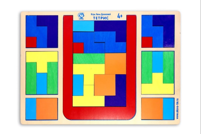 "Тетрис" - развивающая игра-головоломка в виде деревянного планшета с набором фигурок. Пособие развивает пространственное воображение, логику, мелкую моторику руки. Также игра может использоваться для изучения основных принципов арифметики. В комплект входит методическое пособие с описанием заданий. Игра рассчитана на возраст от 3 лет и старше.