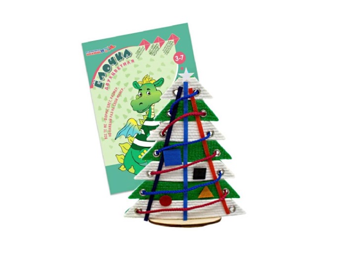 Елочка Двухцветная — развивающая игра, входящая в комплект "Эталонные конструкторы" и основанная на методике В. Воскобовича. Пособие формирует у ребенка дошкольного возраста сенсорные и пространственные представления, развивает внимание, память, мышление, творческое воображение, мелкую моторику пальцев и рук. В состав игры также входит инструкция, в которой есть задания и упражнения на знакомство с игрой, конструирование с вариантами усложнения для детей разного возраста. Рекомендуемый возраст от 3 до 7 лет.