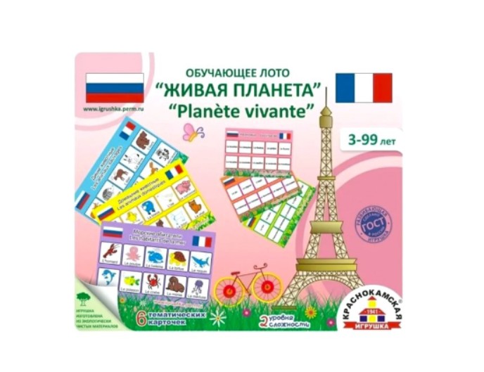 Обучающее лото - французский язык "Живая планета", Краснокамская фабрика деревянной игрушки