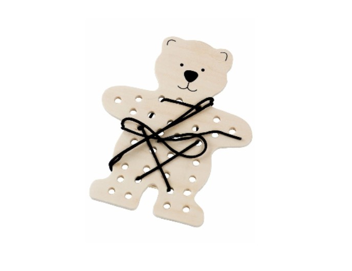 Натуральное дерево, гладкая обработка краев и безопасные материалы делают шнуровку прочной и удобной для детских рук. Деревянная шнуровка «Мишка» отлично подходит для занятий дома, в детском саду и развивающих центрах, помогая ребенку учиться и развиваться с интересом.