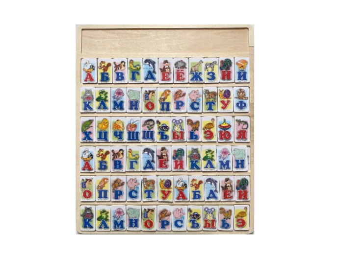 Ребенку предстоит работать с деревянными элементами с буквами, вставляя их в соответствующие ячейки рамки. Игра позволяет рассматривать буквы, сравнивать их между собой, запоминать форму и порядок, а также составлять простые слоги и слова.