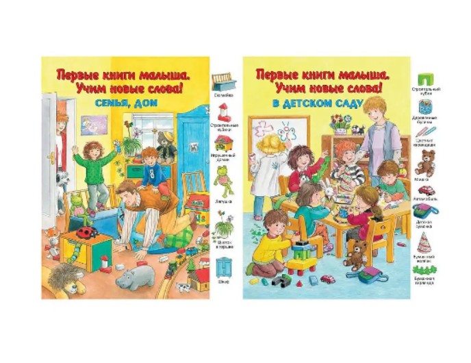Книга «Семья, дом», «В детском саду», «В зоопарке» серия Первые книги малыша. Учим первые слова, Детское издательство «Улыбка»