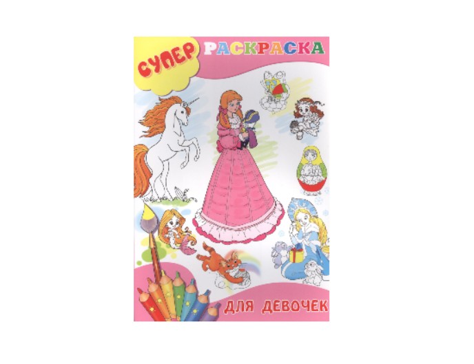 Книга «Супер-раскраска для девочек» — яркая и добрая раскраска для детей от 3 до 7 лет, которая приглашает малышек в мир принцесс, животных, цветов, моды и волшебных сюжетов. Ребенок создает собственные яркие картинки, раскрашивая любимых героев и красивые композиции.