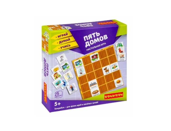 Пять домов — увлекательная логическая игра от Bondibon, разработанная для детей от 5–6 лет и взрослых. Игроку предстоит расставлять элементы на игровом поле таким образом, чтобы правильно выполнить условия задания: разместить все домики, персонажей и объекты в нужных позициях, не нарушая логических связок.