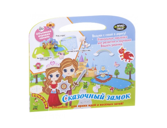 Набор наклеек "Сказочный замок" — яркий игровой комплект съемных нано-стикеров от бренда Bondibon, созданный для детей от 3 лет. Ребенок может многократно приклеивать и переклеивать принцесс, рыцарей, волшебных существ, мебель и элементы замка, создавая собственные сюжетные сценки и волшебные истории.