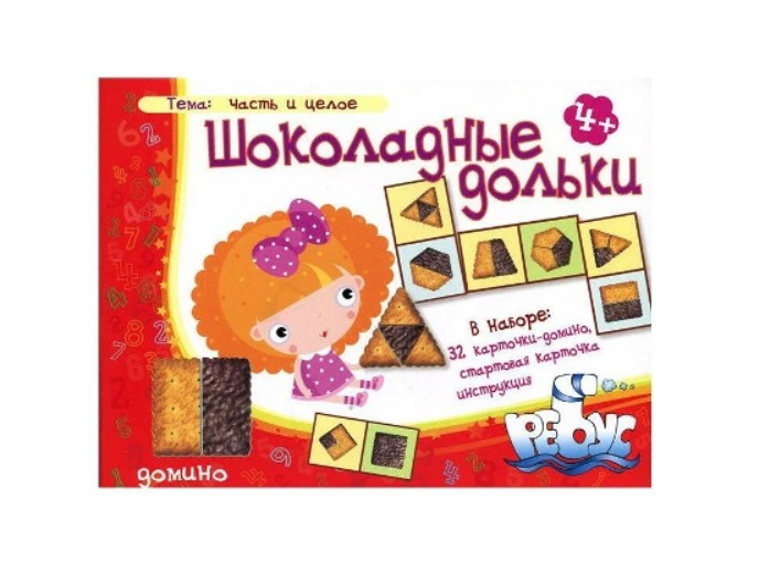 Шоколадные дольки лото — настольная игра-домино, созданная для детей от 4–5 лет и старше, а также для семейного досуга, занятий в детских садах, развивающих студиях и логопедических группах. Она помогает в игровой форме развивать внимание, память, зрительное восприятие, логическое мышление и умение сопоставлять изображения по признакам.
