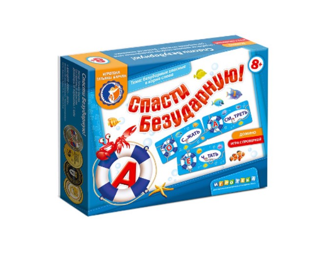 Спасти безударную — настольная игра-домино для детей от 6 лет и взрослых. Игрокам предстоит подбирать слова, правильно ставя ударение, и соединять их на игровом поле, как в классическом домино. Каждое задание развивает внимание к деталям, знание правил ударения в словах, логическое мышление и языковую грамотность. Игра помогает детям лучше запоминать, где ставится ударение, учит анализировать слова и делает работу с русским языком увлекательной. Простые правила и яркие карточки делают игру отличным выбором для домашних занятий, поездок и семейных игр. Игра увлекает, развивает и превращает изучение правил языка в весёлое и доступное приключение.