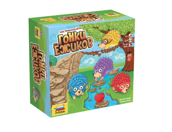Настольная игра «Гонки ёжиков» компании «Звезда» предназначена для детей от 4 лет. Это семейная настольная игра-ходилка на скорость и внимательность, в которой участники соревнуются, помогая своим ёжикам первыми добраться до финиша.