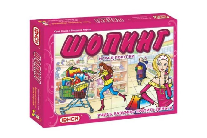 "Шопинг" - это игра для девочек, которые любят ходить по магазинам в поисках модных вещей: нужно покупать различные товары и пользоваться скидками, акциями, распродажами, дисконтными картами. Игра учит правильно распоряжаться деньгами, грамотно их тратить. Игра рассчитана на 2–4 игроков, рекомендуемый возраст от 8 лет, длительность партии 20–40 минут.